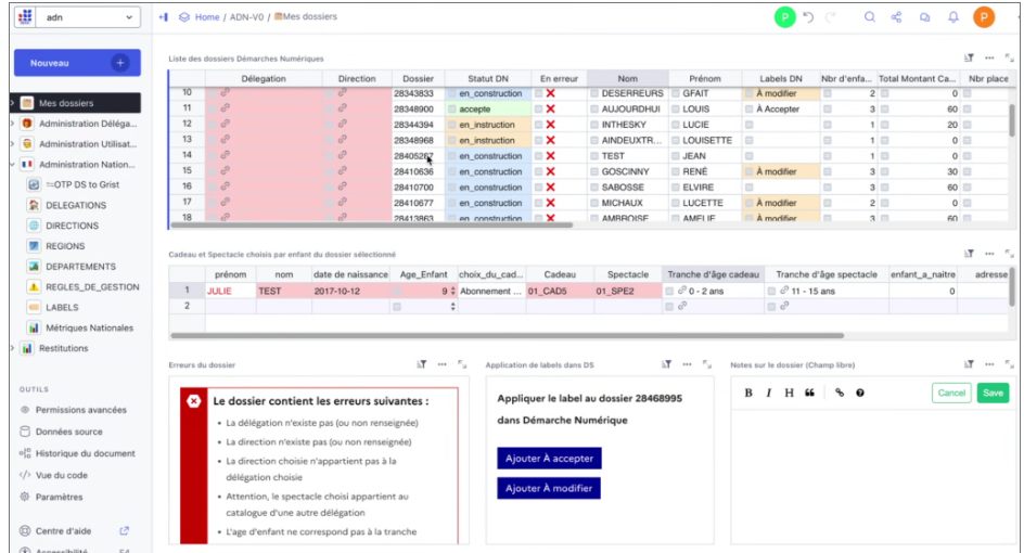 Ce projet est la première mise en oeuvre à l’échelle de l’interface entre Grist et Démarche Numérique, deux outils qui font partie des communs numériques propulsés par la DINUM